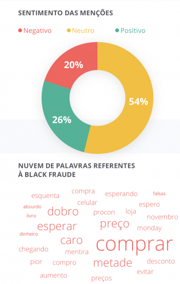 O sentimento dos consumidores são positivos sobre a data, superando em muito as referências negativas – Black Fraude – insinuação que define a prática de subir o preço de um produto antecipadamente para, depois, anunciá-lo com desconto. A expectativa é que mais consumidores adotem à Black Friday este ano, iniciando as compras com uma semana de antecedência.